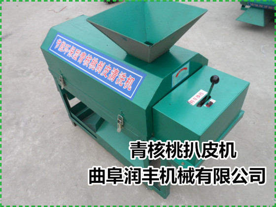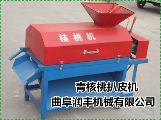新型青核桃脫皮清洗機采用自由旋切剝皮,核桃進入旋切滾刀區,高速運轉的滾刀開始切削青皮,核桃同時自由滾動使其各面被滾刀切削,脫凈的核桃直徑小不易被削到,不斷的滾出旋切區,少量未削凈的青皮被鋼絲毛刷清除,干凈的核桃滾出加工區,進入容器。新的核桃不斷的喂入,剝凈后被排出。隔柵和旋切滾刀之間的距離可以自動調節,還可以根據地區核桃的大小、青皮的薄厚通過加減墊片進行人工調整,以減少破殼率,提高脫凈率。