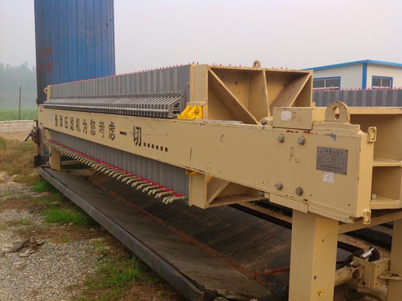 機架部分是機器的主體,用以支撐過濾機構,連接其它部件。它主要由止推板、壓緊板、油缸體和主梁等部件組成。機器工作時,油缸體內的活塞推動壓緊板,將位于壓緊板與止推板之間的濾板、隔膜板、濾布壓緊,以保證帶有壓力的料漿在濾室內進行加壓過濾。