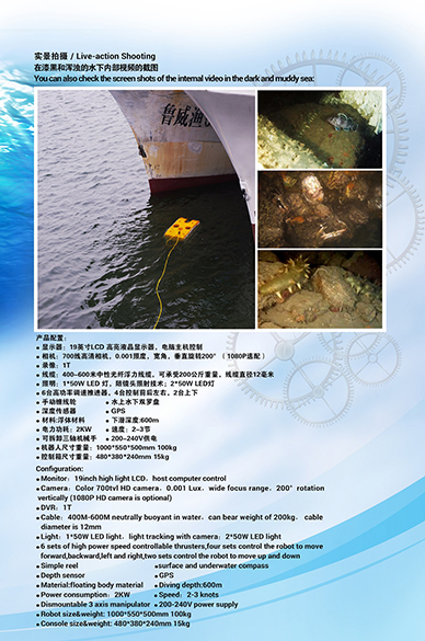 水流。采用高清彩色攝像頭和大功率LED照明,可拍攝1080P級別水下高清錄像。模塊化設計、可搭載各種儀器設備
