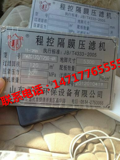 2012年景津壓濾機2套,100平方,箱式隔膜,自動拉板,99成新設備.附件齊全.