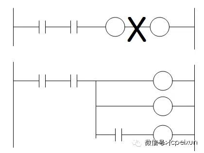 3、梯形圖的觸點應畫在水平支路上,不能畫成垂直支路上。