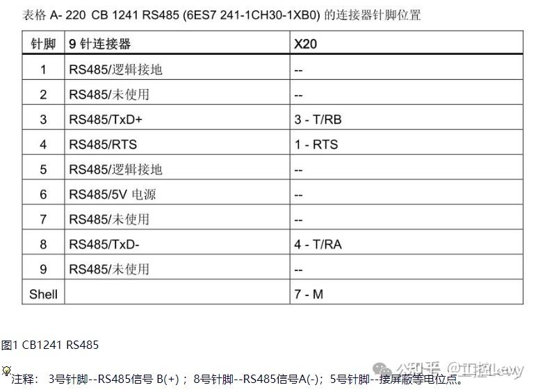 CB1241 RS485信號板(安裝在CPU本體上)訂貨號:6ES7241-1CH30-1XB0接線如下圖。