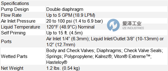 適用于各種應用,包括化學品輸送/轉移和分配、除草劑和水的轉移、溶劑應用、零件清洗器、墨水轉移和汽車清洗系統,G57系列泵專為實現卓越性能和可靠性而設計。