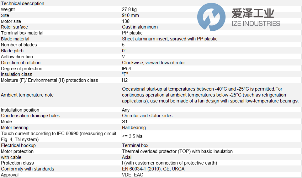 EBM PAPST風機A6D910-AA01-01技術參數