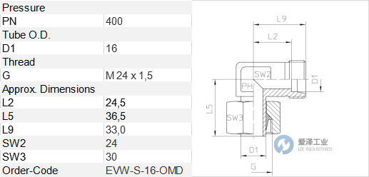 PH接頭EVW-S-16-OMD技術參數及特點介紹