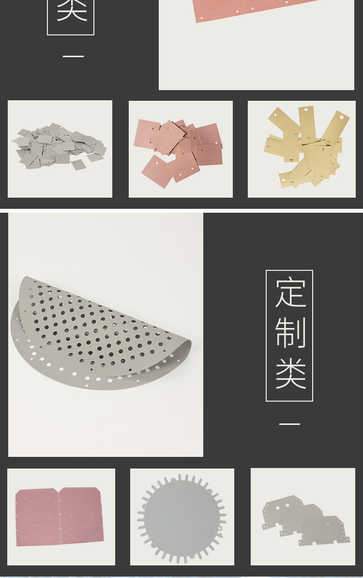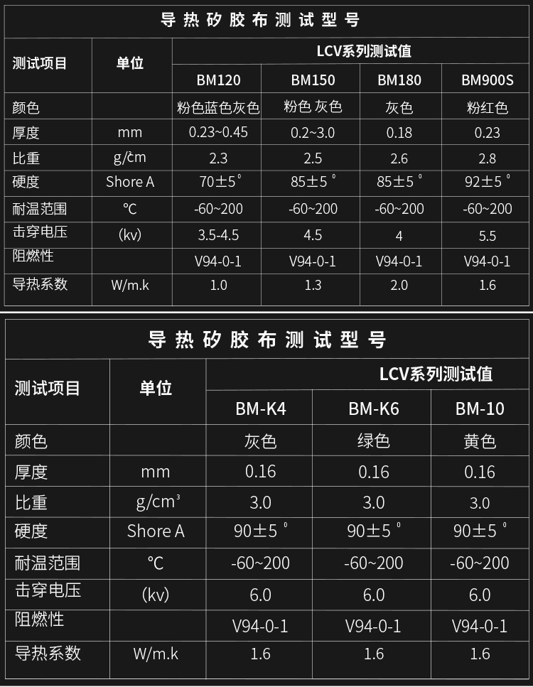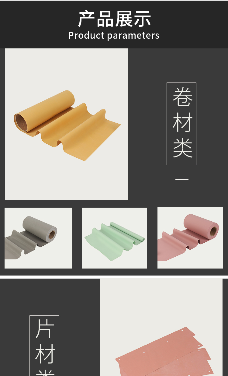 1:表面較柔軟、良好的導熱率以及良好的韌性抗撕裂、電介質強度高、耐電壓強、耐磨、高壓絕緣性能佳、表面無粘性、厚度薄、適合用于功率器件的絕緣及導熱。