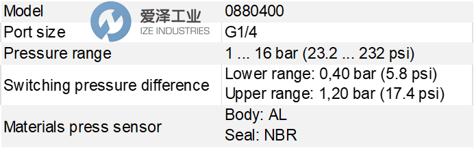 如果有任何關于NORGREN壓力開關0880400的疑問,請隨時與我們溝通(021-31006702)。我們將盡全力解決您的問題。