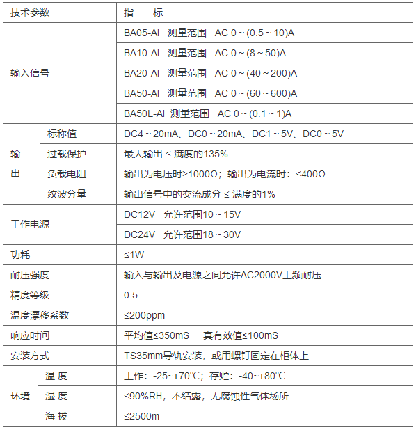 BA系列交流電流傳感器
