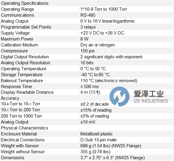 用戶可以通過位于設備正面的四個觸摸控制按鈕或 RS-485 通信接口設置選項。其操作簡便,測量范圍寬廣,使其成為各種真空應用的理想之選。