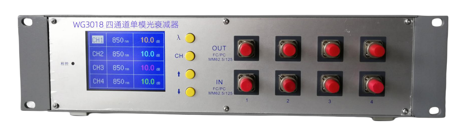 WG3018四通道單模可調(diào)光衰減器是上海文簡(jiǎn)電子自主研發(fā)和生產(chǎn)的基于MEMES VOA器件設(shè)計(jì)而成的集成光儀表,工作于1310/1490/1550NM三個(gè)波長,包含四路獨(dú)立的光衰減器,每一路能在70DB范圍內(nèi)按照 0.1DB的步進(jìn)精度進(jìn)行調(diào)節(jié)。數(shù)字式按鍵,功能穩(wěn)定可靠,重復(fù)性高。具備存儲(chǔ)設(shè)置功能,可以記憶多達(dá)100個(gè)事先設(shè)置好的衰減點(diǎn)。儀表還具有RS232和USB接口功能,可由PC發(fā)送指令完成所 有操作和控制,便于和其他測(cè)試儀器一起構(gòu)成自動(dòng)化測(cè)控系統(tǒng),很好提升了使用者的良好體驗(yàn)過程。本儀器在在光通信產(chǎn)品的生 產(chǎn)測(cè)試過程中是提高測(cè)試效率和提升產(chǎn)能的得力工具。