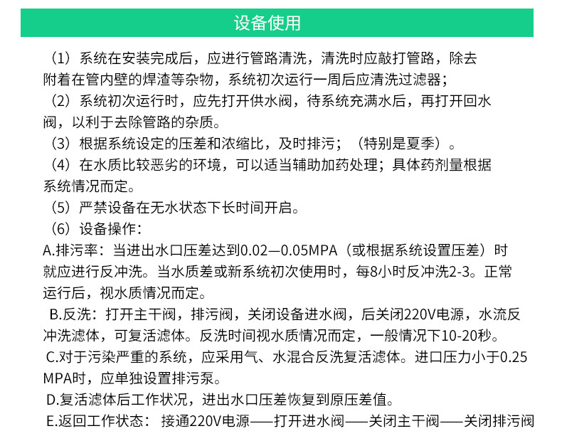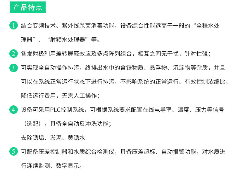 水與金屬管接觸產生的腐蝕,屬于電化學腐蝕。多功能全程水處理器械工作原理就是削弱抑制電化學腐蝕。首先是利用有的頻譜轉換,在金屬管道表面形成氧化液膜,使其腐蝕產物Fe2O3,轉換為穩態的Fe3O4,達到以銹制銹的目的。二是利用活性鐵持濾膜,機械變孔徑阻擋及電暈效應場的綜合過濾體吸附,終排除水中的鐵離子和鈣鎂離子,懸浮物、沉淀物等物質,使水質濁度、色度低。故全程水處理可在系統正常運行狀態下完成防腐、除銹、脫色、控制二次污染,對水中的雜質進行吸附濃縮,排污的綜合處理。sldgle
