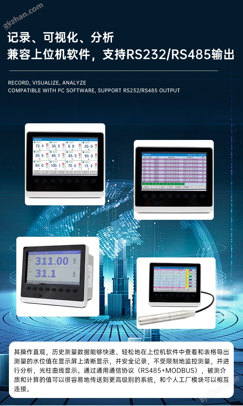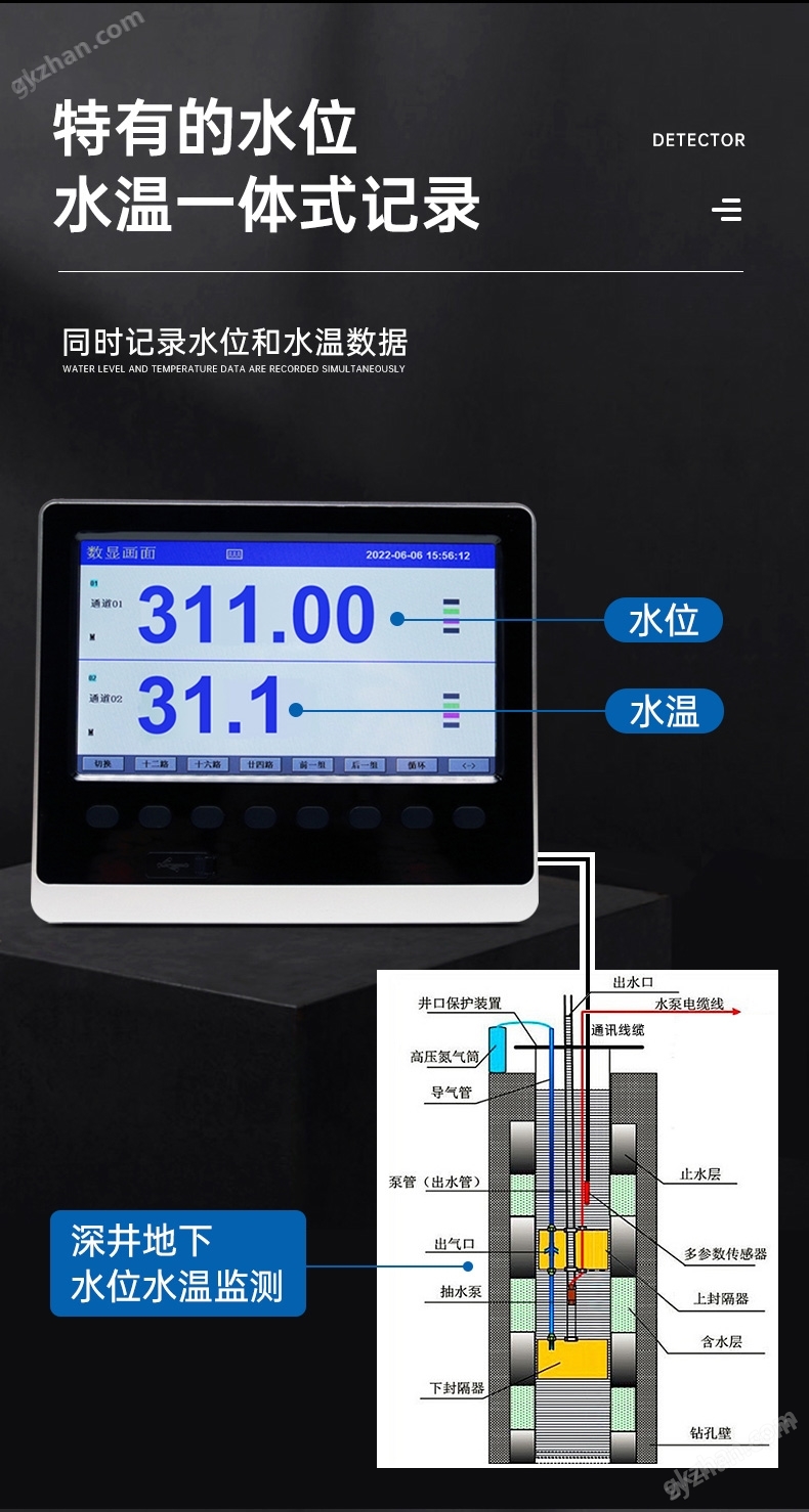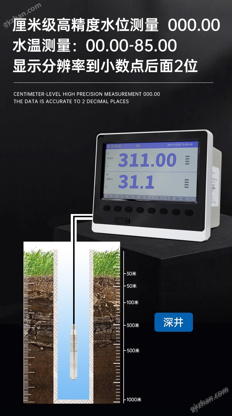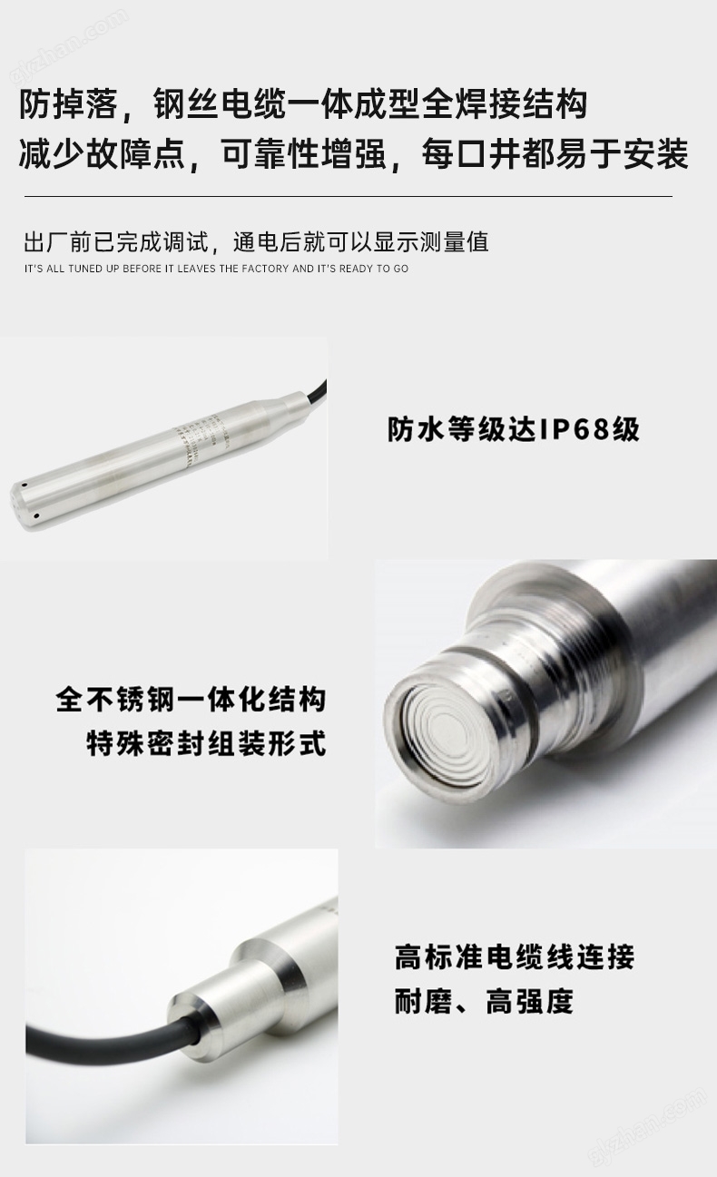 傳感器安裝簡便快捷:只需下放探頭、保護電纜并接入4-20mA或RS-485環(huán)路,即可快速投入使用,輕松實現(xiàn)實時顯示水位,記錄水位、報警設置與泵控自動化。