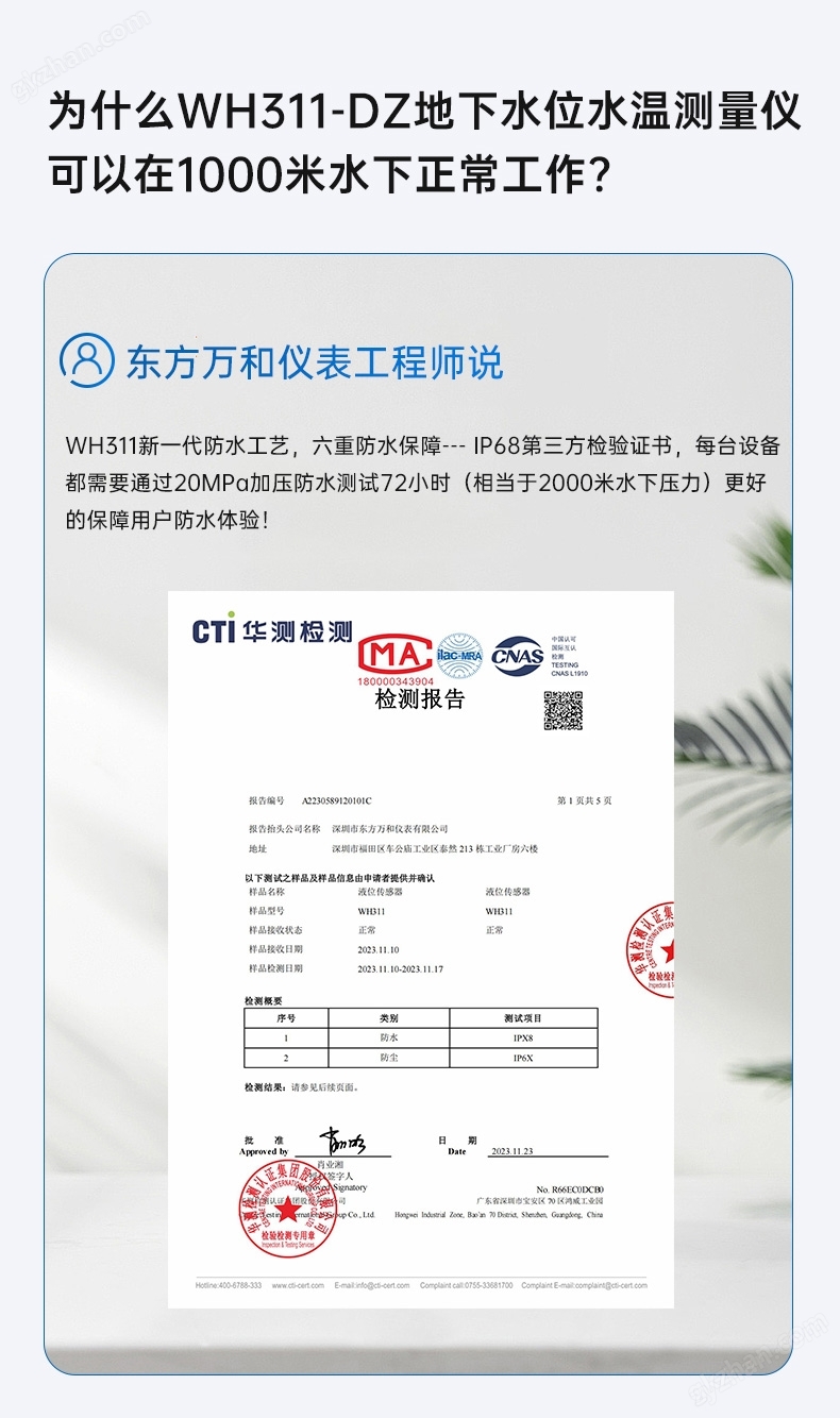 WH311型潛水型深井液位傳感器,由東方萬和儀表研發(fā)制造,專為深井、地源熱泵及地質勘探介質中的液位監(jiān)測而設計。該傳感器直接浸入液體中,通過測量靜液壓實現(xiàn)液位高精度實時轉換。其在液面以下進行監(jiān)測,可有效避免泡沫、蒸汽、濺灑與湍流的干擾,確保在復雜工況下仍能提供穩(wěn)定可靠的數(shù)據(jù)。
