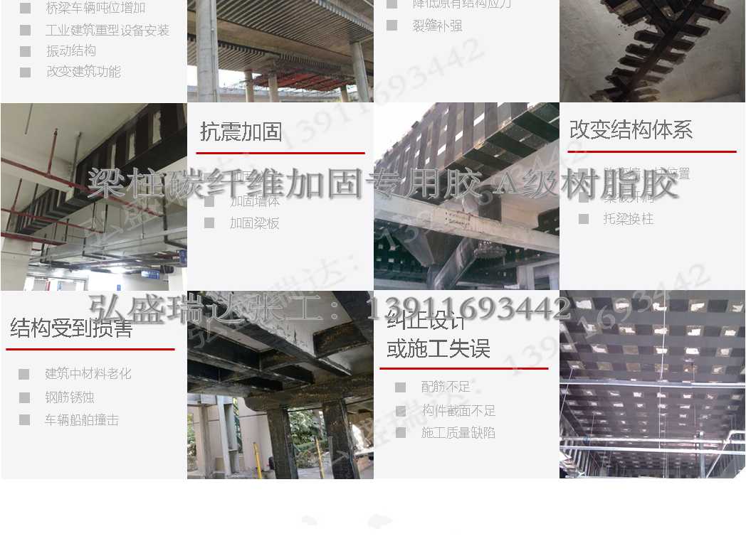 廣泛適用于梁、板、柱等構件及曲面、節點的結構補強及抗震加固; 鋼筋混凝土構件的裂縫加固; 滿足結構承受動靜載荷的需求,如橋梁橋墩、立交橫梁、橋板、橋面; 構件的抗彎、抗剪、抗壓加固,結構體系的抗震及砌體結構的加固。
