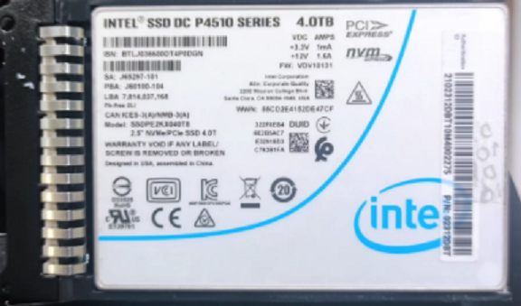 02312DBT 02354YAH P4510 4TB 4000Gb NVMe 2.5寸 SSD企業級固態硬盤批發TEL:13910098771