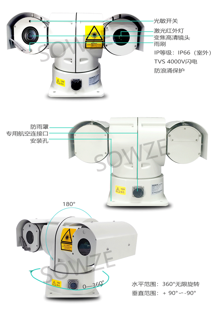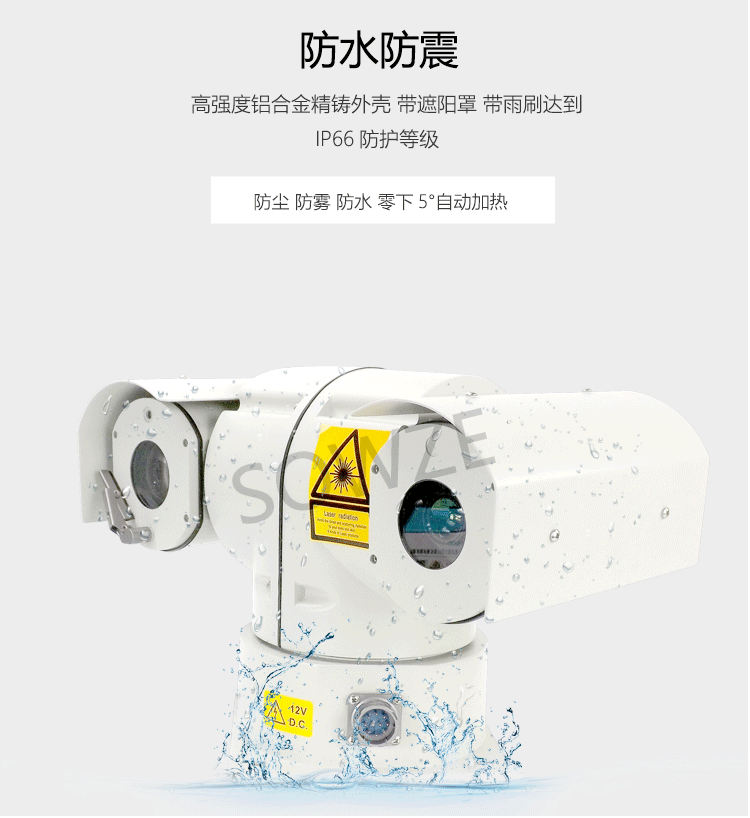 云臺(tái)采用全天候環(huán)境設(shè)計(jì),帶遮陽(yáng)罩,帶雨刷;