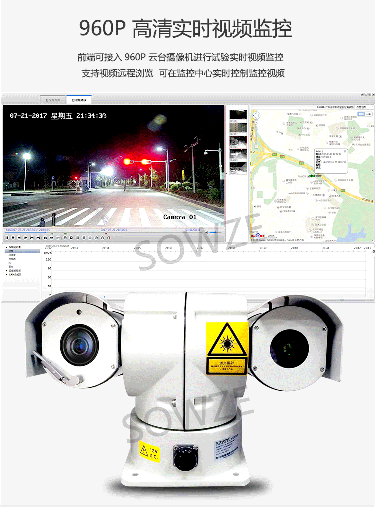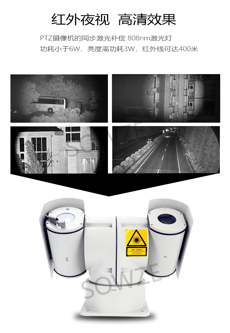 內(nèi)置5W紅外激光燈,夜視達(dá)500米以上;