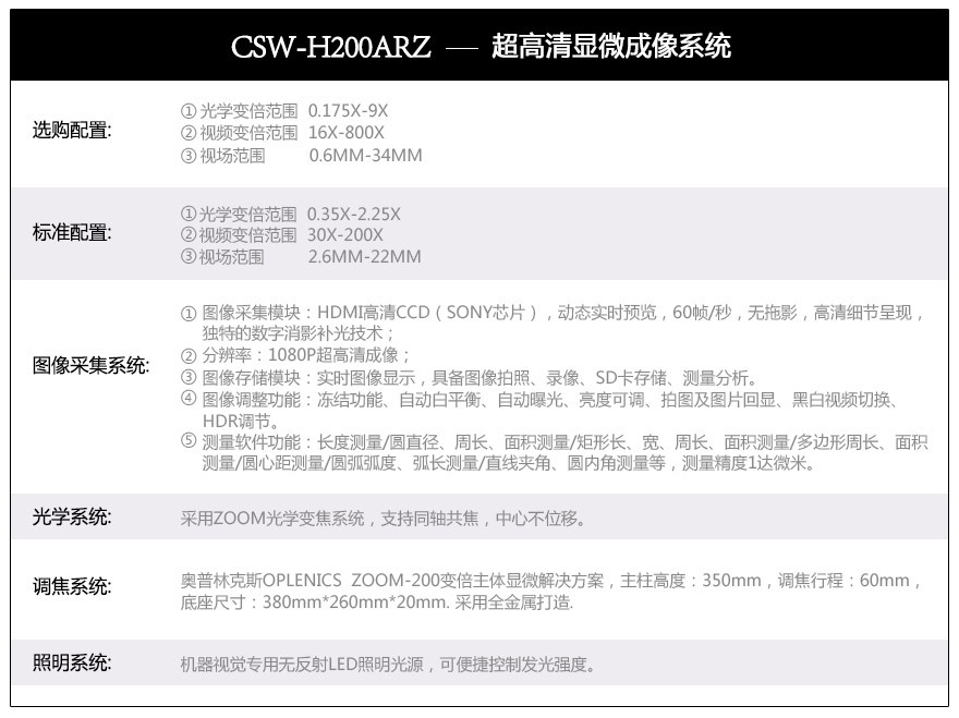 1.此視頻顯微鏡,標準配置:放大倍數:30倍率-200倍。