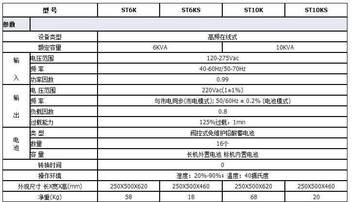 金武士ST6K 6KVA高頻在線式ups電源內(nèi)置蓄電池 金武士蓄電池功用特色