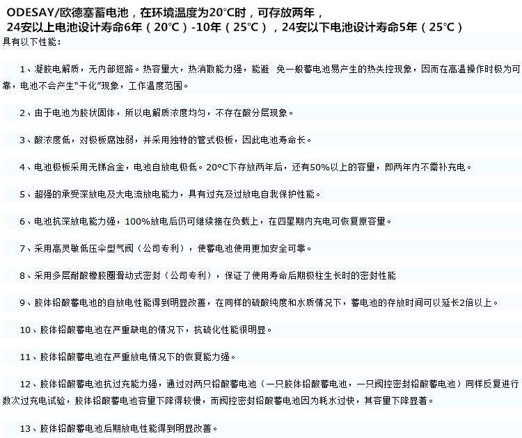| 類型 | 膠體蓄電池 | 是否可充電 | 可充電 |