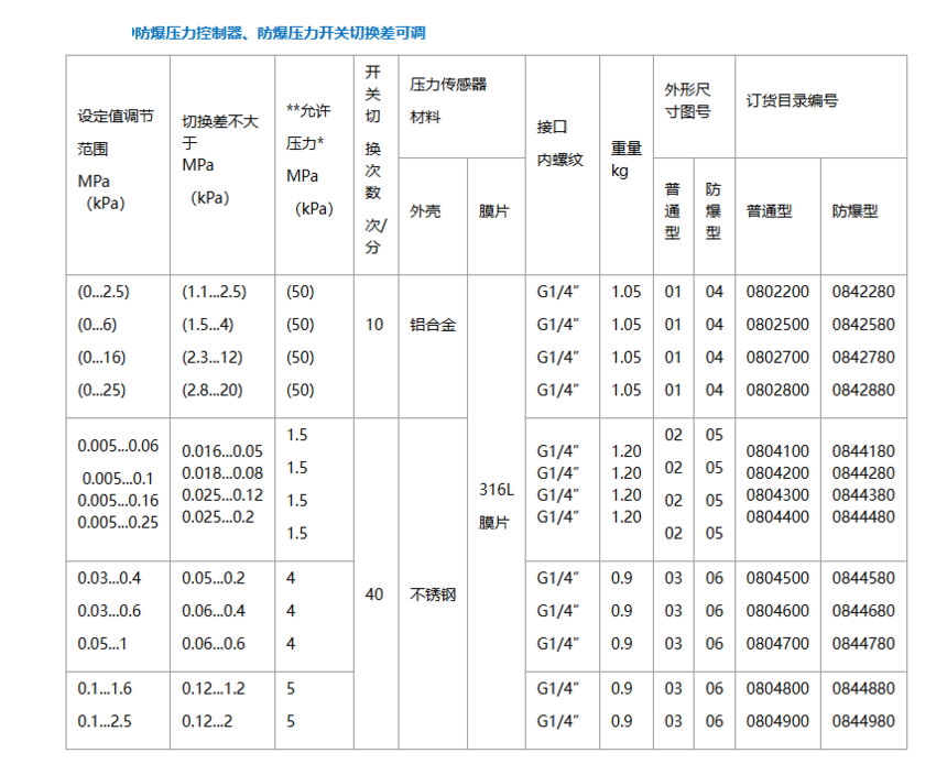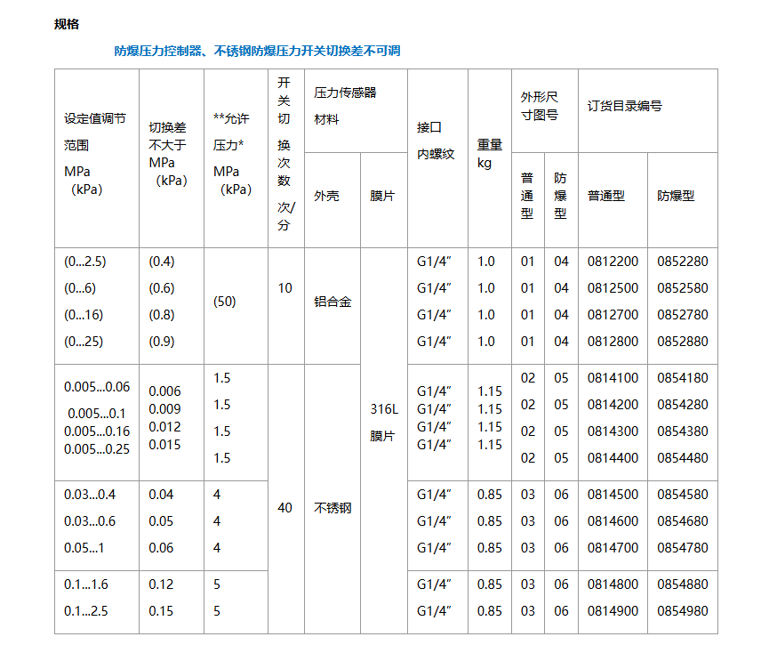 YX-100FB-A防爆壓力控制器、不銹鋼防爆壓力開關(guān)是我司的主要產(chǎn)品之一。其采用膜片式傳感器,可用于空氣等中性氣體和水,液壓油,潤滑油。輕燃油等液體介質(zhì)。控制器的設(shè)定值可調(diào),調(diào)節(jié)范圍0-2.5MPa。特點(diǎn):不銹鋼防爆壓力控制器。我司產(chǎn)品擁有超長質(zhì)保,質(zhì)保期長達(dá)兩年。