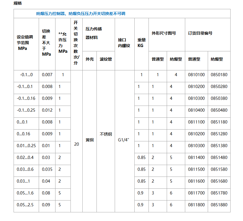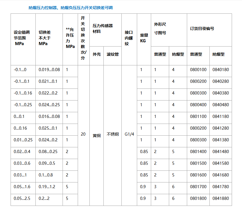 YX-100FB-C 防爆壓力控制器、防爆負(fù)壓壓力開關(guān)是我司的主要產(chǎn)品之一。其采用不銹鋼波紋管傳感器。誤差小,耐壓高,穩(wěn)定性好,可用于真空、空氣等中性氣體和水,致冷劑、油等液體介質(zhì)。防爆負(fù)壓壓力開關(guān)的設(shè)定值可調(diào),調(diào)節(jié)范圍-0.1-2.5MPa。我司產(chǎn)品質(zhì)量可靠,擁有長(zhǎng)達(dá)兩年的質(zhì)保期。