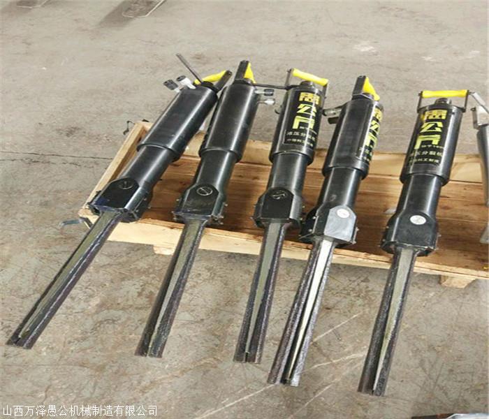 劈裂機要和各種石頭打交道,就是要硬碰硬,當然很重要,有些廠家吹噓自己的產品,但是因為使用的劣質用料不好而成了產品。對于客戶來說就是要物超所值,產品的很重要。巖石機是巖石的抗拉性比較弱這點出發而研發出來專門石頭的,作業是靜態分離,劈裂無振動、無沖擊、無噪音,無粉塵,數秒鐘內完成,工作時不影響周邊,也不受周邊的影響,在狹窄、的中也可操作,并且操作簡單易上手,單人既可完成作業。而且一臺手持式巖石劈裂機可配置1~5支,很大限度了工作效率,。無噪音、無震動、非常;穩定性強裝材料加工,100多個和地區客戶驗證。品質是信賴保證。參考目前國內許多同行產品均現楔塊卡在孔內無法拔,液壓管經受不了液壓壓力而現爆管現象等;操作簡單不需要繁瑣操作程序,也不要求操作人員有高超技術,按下挖掘機開關即可操作。1) 安全性 愚公斧分裂機在靜態液壓環境下可控制性的工作,不會像***和其它沖擊性拆除、鑿巖設備那樣產生一些危險隱患;無需采取復雜的安全措施。2) 環保性 愚公斧分裂機工作時,不會產生震動、沖擊、噪音、粉塵、飛屑等,周圍環境不會受到影響,即使在人口稠密地區或室內,以及精密設備旁,都可以無干擾地工作。3) 經濟性 愚公斧分裂機數秒鐘可完成分裂過程,并且可連續無間斷地工作,效率高,運行及保養成本很低,無需像***作業那樣采取隔離或其他耗時和昂貴的安全措施。4) 精確性 與大多數傳流的拆除方法和設備不同,愚公斧分裂機可以先精確的確定分裂方向,分裂形狀以及需要的出部分尺寸,分裂精度高。5) 適用性 愚公斧分裂機人性化的外形設計和耐用性結構設計,確保了其使用方法單易學,僅需***,維護保養便捷,使用壽命長;分裂機和液壓泵站搬運十分方便。四、愚公斧分裂機基本參數(三種型號槍頭)分裂力: 1000噸所需鉆孔直徑 :Φ42mm 46mm 50mm額定油壓 : 60Mpa壓力油標號: 46#或68#油箱儲油量: 22~60單槍體積重量(含劈塊):35kg液壓泵站重量(含機架): 125kg/臺柴油動力: 8匹電機功率: 4KW運輸包裝: 統一木箱工作壽命:正常使用下,內部液壓系統可達10年以上。楔鐵壽命可達30000次重復工作五、劈裂孔設置劈裂孔的合理設置是保證作業質量和工作效率的關鍵,以下幾個參數是劈裂點設置的關鍵:(1)底孔軸線是否在同一平面;(2)底孔深度;(3)底孔間距。打孔時 (2)、(3)中的具體數值設置,主要取決于愚公斧分裂機的型號,同時受巖石的密度、強度等影響。例如450型分裂機在劈裂花崗巖巖石時候,須在要分裂處打50mm的孔徑,100cm的孔深,50-100cm的孔距。(孔須在一條***)分裂完成后大概可分1-3方左右巖石。