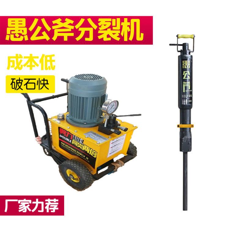 一套愚公斧液壓分裂機主要組成為:一臺或數臺分裂槍、一臺液壓動力站、一套高低壓液壓連接管與快速接頭。(注:本公司可以根據客戶的需要,配置一機帶一槍、一機帶二槍、三槍至一機帶六槍不等)。愚公斧分裂機泵站分為:4KW電動泵站、6匹柴油泵站、8匹柴油泵站,泵站隨機都帶2根10米油管。可隨客戶要求選擇。標配一把槍:《泵站1臺、愚公斧分裂機1把、油管10米/2根,另贈送:七件小工具1套》標配兩把槍:《泵站1臺、愚公斧分裂機2把、油管5米/4根、10米/2根,分流器(一分二)1個;另贈送:七件小工具1套》標配三把槍:《泵站1臺、愚公斧分裂機3把、油管5米/6根、10米/2根,分流器(一分三)1個;另贈送:七件小工具1套》標配四把槍:《泵站1臺、愚公斧分裂機4把、油管5米/8根、10米/2根,分流器(一分四)2個;另贈送:七件小工具1套》標配五把槍:《泵站1臺、愚公斧分裂機5把、油管5米/10根、10米/2根,分流器(一分五)2個;另贈送:七件小工具1套》標配六把槍:《泵站1臺、愚公斧分裂機6把、油管5米/12根、10米/2根,分流器(一分六)2個;另贈送:七件小工具1套》。