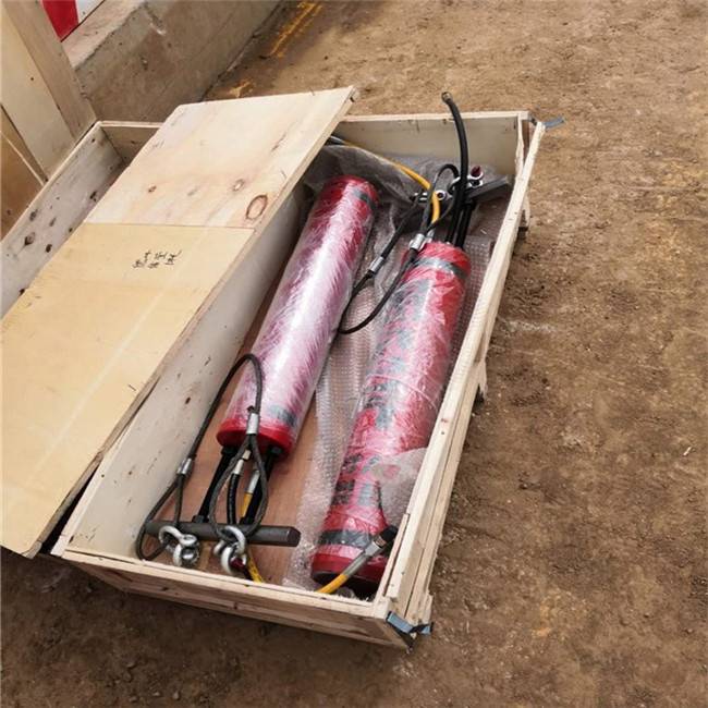 1.先用鑿巖機(小型劈裂機用鑿巖機,大型劈裂機用潛孔鉆)在巖石上鉆孔,鉆孔直徑取決于液壓劈裂機楔塊組件工作部分的外徑大小,而楔塊組件的大小取決于現場的巖石大小,巖石體積較大,選用大直徑楔塊組件,還可小直徑多孔,巖石體積較小,選用小直徑楔塊組件。鉆孔時注意,礦石鉆孔的方位應垂直于孔所在的表面,孔的大小應與劈裂器的直徑相適應,鉆孔的深度比楔塊組件插人長度深200一250mm。
