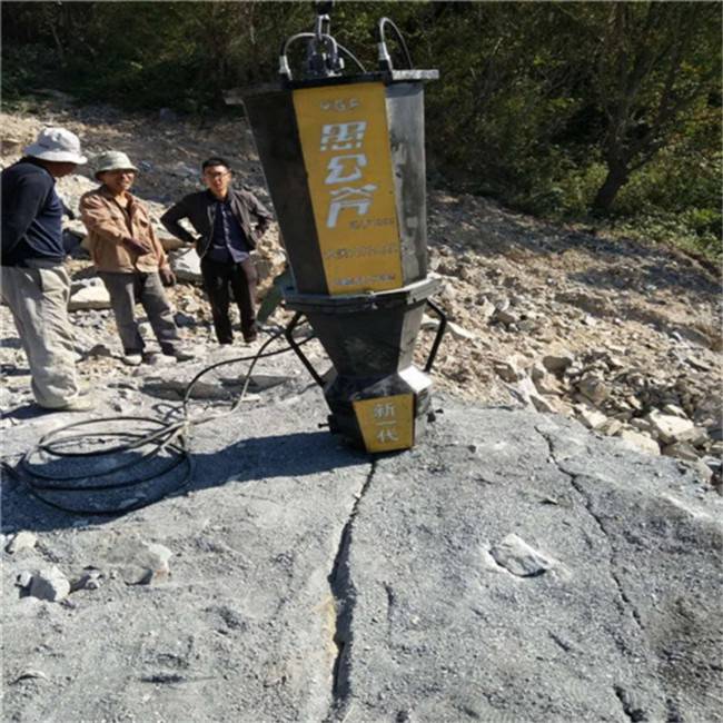 2劈裂棒的鉆孔直徑有十幾厘米到二十多厘米多款,鉆孔間距3到5米一排,鉆孔的深度在2米左右,每次放入一排4到6條分裂棒,劈裂棒需采用挖機吊裝放入孔中,巖石從底部開始向上裂開,液壓泵站在一兩分鐘產生5千到1萬噸的分裂力,一次就可脹裂開石頭幾十個立方,每天可輕松破碎堅硬巖石上千立方,強大到即使沒有凌空面也能達到大間距、大裂縫的施工效果,這是在其他的巖石液壓分裂行業里都沒有的。
