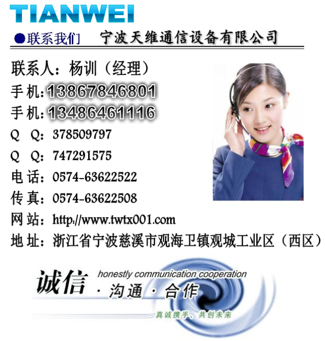 【浙江天維愿為您提供優質的產品,良好的的服務!愿與您共同打造通信行業的未來。感謝您對浙江天維的信任和支持。謝謝您的參與。】