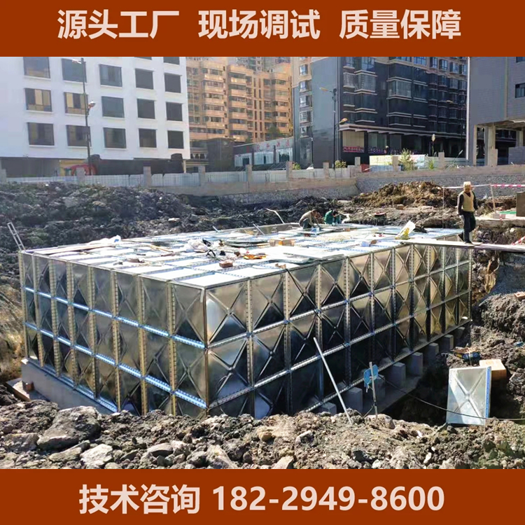 隨著我國建筑業的迅猛發展,配套的消防設施也在不斷向環保、抗壓、抗浮、抗震等性能優化發展,長沙中贏供水設備○公司提供了一種工廠預制的裝配式復合不銹鋼水箱模塊及現場安裝工藝,采用本新型的技術方案,安裝便捷,一臺普通300m3地埋消防成品水池在2-3天就可以安裝完畢,單元水箱模塊是由不銹鋼材質與混凝土復合預制而成所需規格,其接觸水的部分是耐腐蝕不銹鋼材質界面,即確保水質無二次污染也解決了混凝土材質滲漏的隱患,它是采用預埋連接構件裝配連接固定,且安裝施工周期短,且便于維護更換也可多次拆裝,無建筑垃圾。