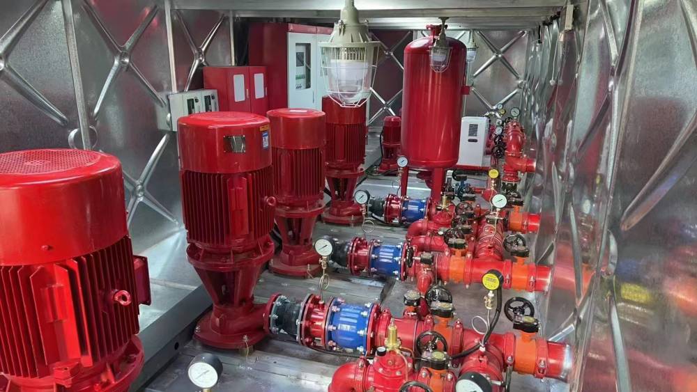 衡陽ZWBF增強型裝配式消防泵房 地埋箱泵一體化給水泵站包括消防水池和消防泵房系統兩個部分,水池由BDF雙層復合模板全螺栓裝配而成,消防水池主要用于儲水,有效容量的大小滿足2小時以上整體火災延續用水量,有關泵房部分,主要就是用來放置消防水泵機組的, 為消防系統提供源源不斷的水動力,也是整個消防系統動力源部分。地埋式箱泵一體化消防泵站可根據產品基礎結構分為;有地板地埋式和無底板地埋抗浮式。 又可以根據所用泵組的樣式分為:立式長軸深井泵地埋上部檢修泵房式和管道泵地埋式消防泵房。還可以根據所用消防給水設備的功能不同分為:增壓地埋式箱泵一體化給水設備、恒壓地埋式箱泵一體化給水設備、穩壓地埋式箱泵一體化給水設備。